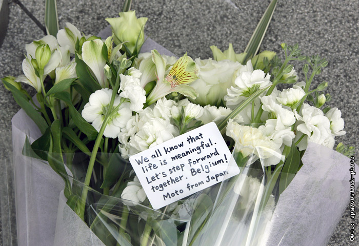 По всему миру люди несут цветы и свечи к представительствам Бельгии в знак скорби и солидарности после терактов в Брюсселе. Исторические памятники во многих городах во вторник вечером подсветили цветами бельгийского флага. Трагедия унесла жизни 31 человека, около 250 получили ранения.