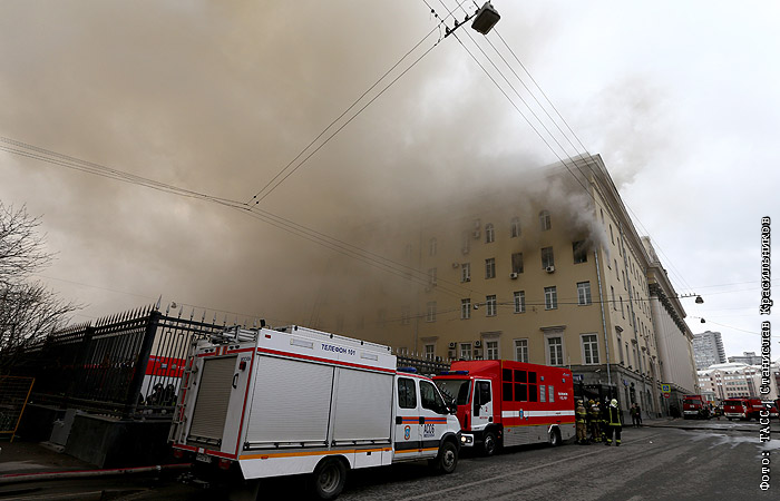 Пожар в здании Минобороны в Москве