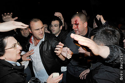 Участники митинга оппозиции у Главного управления МВД Грузии