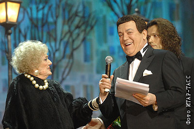 Певцы Алла Баянова и Иосиф Кобзон во время праздничного концерта