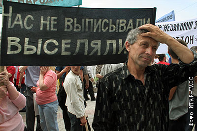 Участники многотысячного траурного митинга, приуроченного 65-й годовщине депортации крымских татар, на площади Ленина
