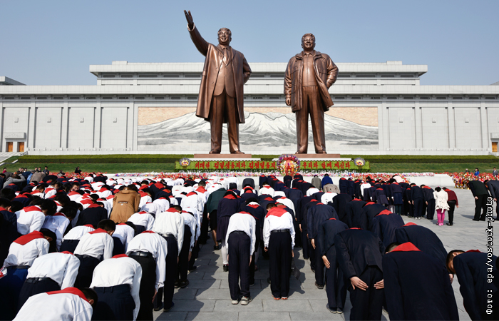 Северная Корея отмечает 104-ю годовщину со дня рождения основателя КНДР Ким Ир Сена, которого в стране называют "солнцем нации". Бесконечный поток людей в этот день приходит к памятникам Ким Ир Сена и Ким Чен Ира в Пхеньяне, чтобы поклониться вождю.