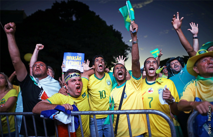 Депутаты нижней палаты бразильского парламента в воскресенье проголосовали за импичмент президента страны Дилмы Русеф. Для отставки президента необходимо 342 голосов, в настоящий момент подано уже 330. Следующий этап голосования пройдет в сенате, верхней палате парламента. Тысячи бразильцев, требующих отставки президента, вышли на улицы городов, чтобы отпраздновать результаты голосования. Дилму Русеф обвиняют в манипулировании бюджетными средствами, в частности, в привлечении банковских займов с целью добиться переизбрания на президентских выборах 2014 года, а также покрыть дефицит бюджета.
