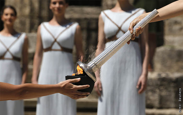 Огонь XXXI летних Олимпийских игр зажжен в ходе торжественной церемонии, проходящей в Древней Олимпии в Греции