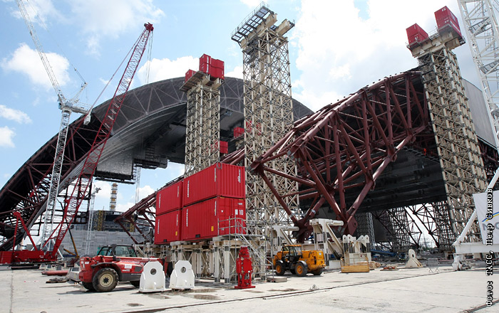 Вид на строительную площадку нового саркофага для четвертого энергоблока