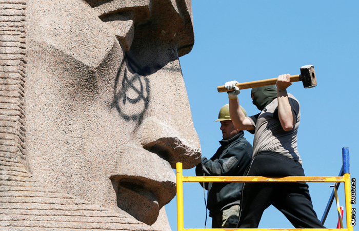 В Киеве активисты попытались разрушить коммунистический памятник чекистам на Лыбидской площади