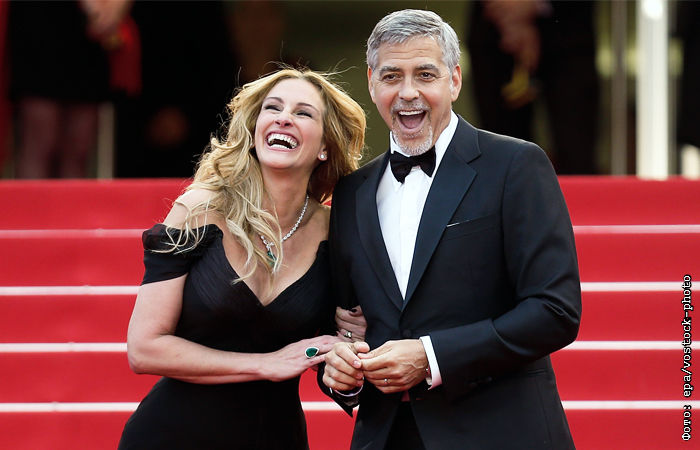 Голливудские актеры Джулия Робертс и Джордж Клуни перед премьерой фильма режиссера Джоди Фостер "Финансовый монстр"