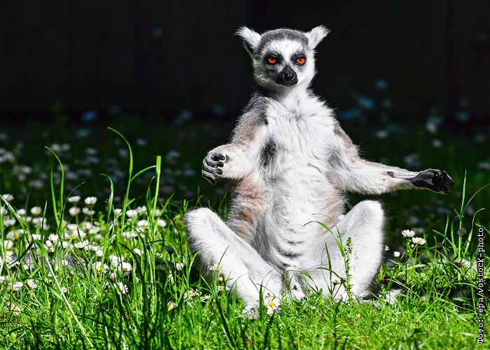 Лемур на лужайке в зоопарке Котбуса. Германия.