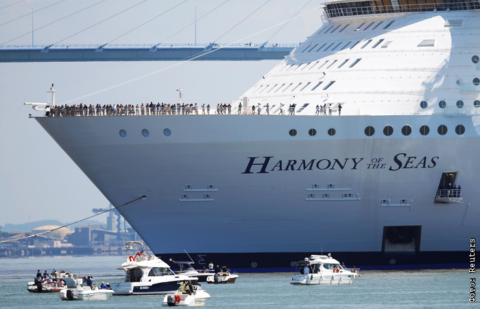 В британский город Саутгемптон из гавани Сен-Назер во Франции прибыл крупнейший в мире океанский круизный лайнер, чтобы принять на борт пассажиров. Первое путешествие лайнера Harmony of the Seas ("Гармония морей") пройдет в водах Средиземного моря.