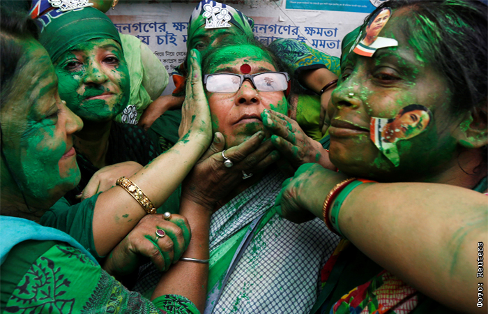 В штате Западная Бенгалия на востоке Индии сторонники партии "Всеиндийский тринамул конгресс" отметили победу на выборах