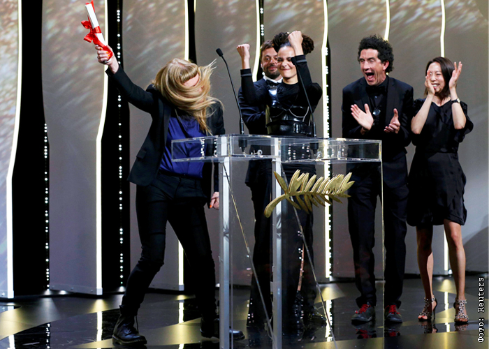 Британский режиссер Андреа Арнольд (слева) принимает награду за лучшую режиссуру (фильм "Американский мед")