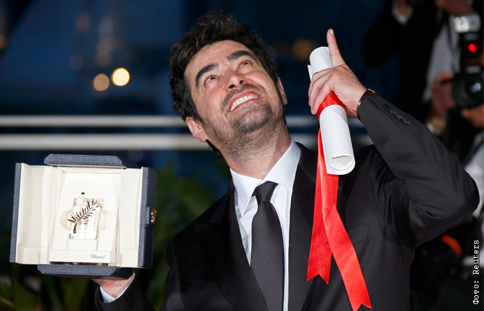 Иранский актер Шахаб Хоссейни с наградой за лучшую мужскую роль в фильме "Коммивояжер"