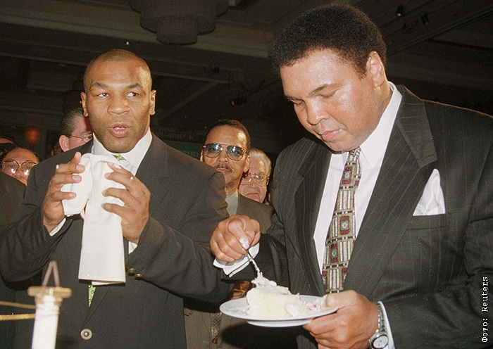 Мохаммед Али отмечает свой 57-й день рождения в компании другого знаменитого боксера Майка Тайсона в Лас-Вегасе