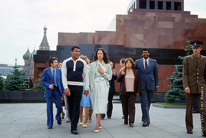 Мохаммед Али и его третья жена Вероника после посещения Мавзолея Ленина в Москве