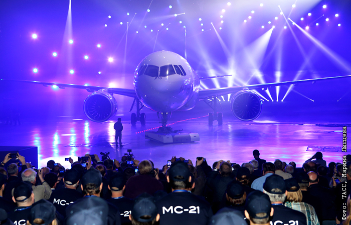На Иркутском авиационном заводе состоялась презентация нового российского пассажирского самолета МС-21