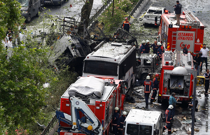 В утренний час пик в центре Стамбула произошел сильный взрыв рядом с автобусной остановкой. Предполагается, что была подорвана бомба с дистанционным управлением, мишенью теракта был перевозивший полицейских автобус. Жертвами теракта стали 11 человек, еще 36 получили ранения.