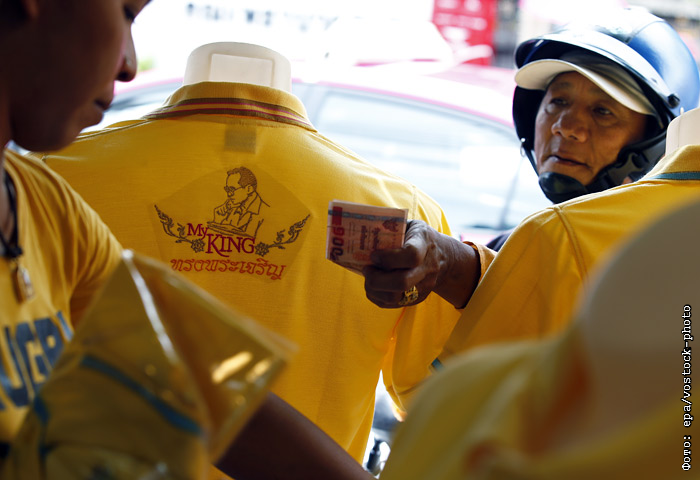В Таиланде изготовили памятные футболки и другую сувенирную продукцию с изображением короля в честь 70-летней годовщины вступления на престол. Пхумипон Адульядет находится на троне с 9 июня 1946 года и является самым долгоправящим монархом в истории страны.