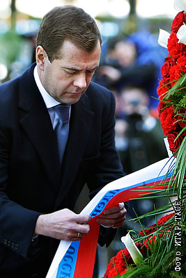 Президент России Дмитрий Медведев на церемонии возложения венка к могиле Неизвестного солдата