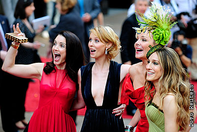 Актрисы сериала "Секс в большом городе" Сара Джессика Паркер, Ким Кэтролл, Кристин Дэвис и Синтия Никсон на премьере полнометражной версии фильма в Лондоне