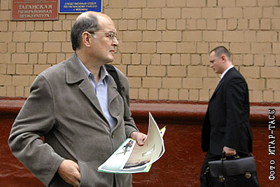 Директор музея и общественного центра имени Андрея Сахарова Юрий Самодуров у здания прокуратуры перед началом допроса по делу о выставке "Запретное Искусство", которая экспонировалась в музее в марте 2006 года