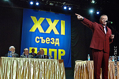Лидер ЛДПР Владимир Жириновский на партийном съезде в "Суриковъ-Холл"