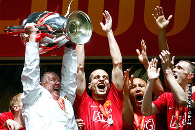 В финале Лиги чемпионов в Москве на стадионе "Лужники" "Манчестер Юнайтед" выиграл в серии пенальти у "Челси" со счетом 6:5 (основное время закончилась вничью - 1:1)