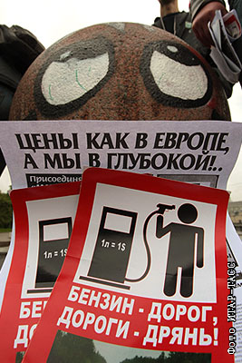 Во время акции "Марш пустых канистр по убитым дорогам" на Болотной площади столицы