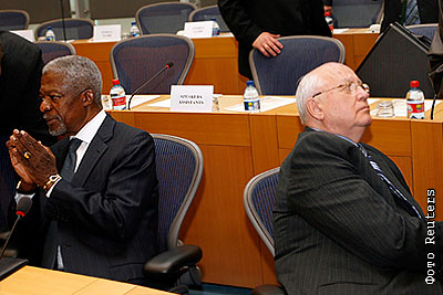 Кофи Аннан и Михаил Горбачев на заседании Европарламента