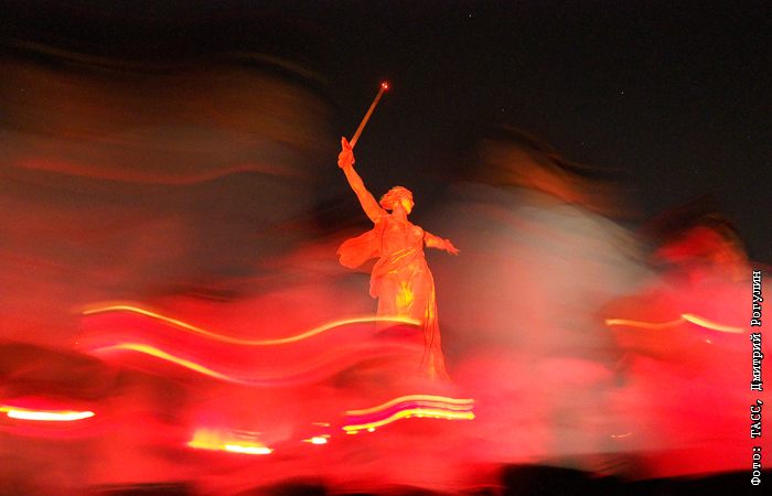 Акция "Свеча памяти" у мемориального комплекса "Героям Сталинградской битвы" на Мамаевом кургане в Волгограде