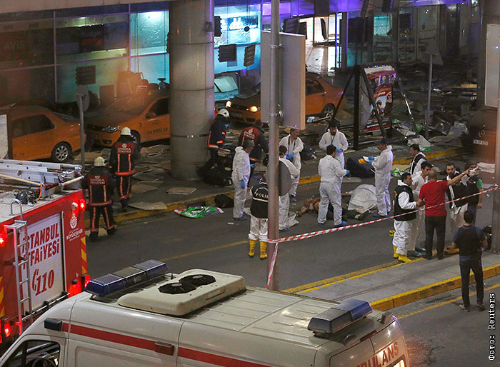 Во вторник вечером террористы-смертники привели в действие взрывные устройства на территории аэропорта имени Ататюрка в Стамбуле. По предварительным данным, трое преступников сначала открыли огонь из автоматов, а затем подорвали себя.