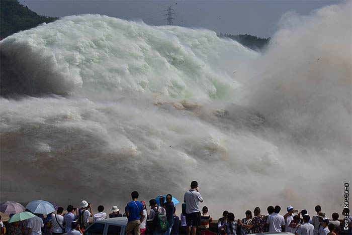 В Китае туристы прибыли на гидроэлектростанцию, чтобы полюбоваться водосбросом ГЭС Сяолянди. Что ж, во-первых, это красиво...