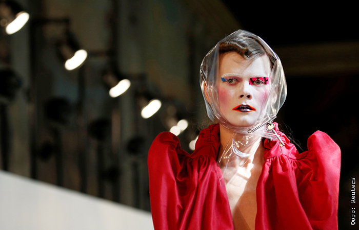 Модель представляет коллекцию британского модельера Джона Гальяно