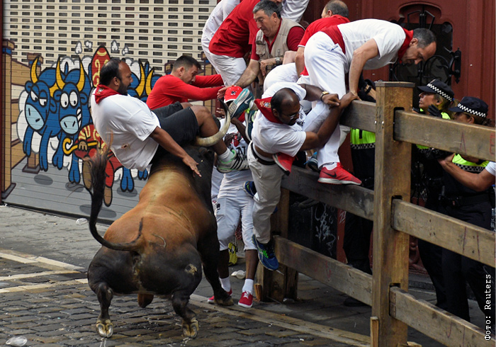 Каждый год тысячи любителей острых ощущений со всего мира приезжают в испанский город Памплона, чтобы принять участие в фестивале Сан-Фермин. Фестиваль проводится ежегодно уже больше восьми столетий и длится с 6 по 14 июля. Самым зрелищным событием Сан-Фермин являются забеги быков и людей по узким улочкам Памплоны. Кроме бега быков на празднике проходят музыкальные фестивали, карнавалы, костюмированные представления, выступления уличных артистов и коррида.