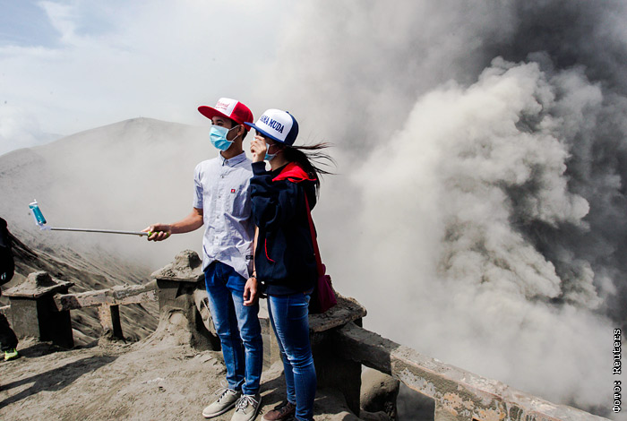Селфи с вулканом Бромо. Восточная Ява, Индонезия.