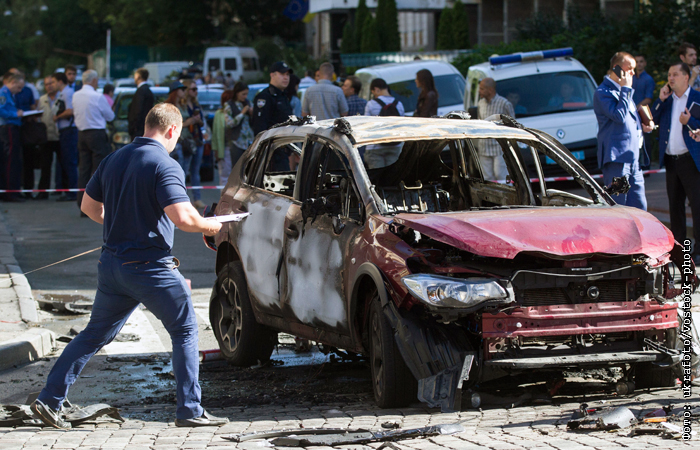 В результате взрыва автомобиля в Киеве погиб журналист Павел Шеремет. Машина принадлежала его гражданской жене, руководителю "Украинской правды" Елене Притуле, но её самой в автомобиле не было. По предварительным данным, в машине сработало самодельное взрывное устройство мощностью до 0,6 кг тротила.