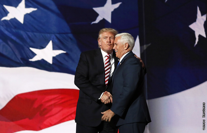 На второй день предвыборного съезда миллиардер Дональд Трамп официально стал кандидатом от Республиканской партии на пост президента США. Кроме того, губернатор Индианы Майк Пенс (справа) стал кандидатом в вице-президенты США.