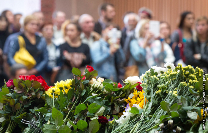 В Украинском доме в Киеве проходит церемония прощания с Павлом Шереметом. Журналист погиб утром 20 июля в результате взрыва автомобиля в центре Киева.