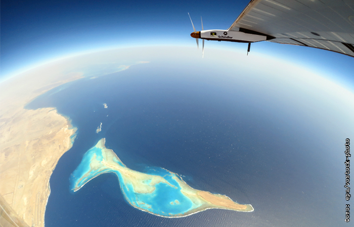 Solar Impulse 2 во время своего полета над Красным морем