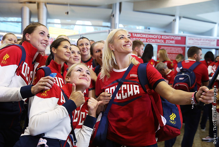 В Шереметьево проводили российскую олимпийскую сборную в Рио-де-Жанейро. Около 70 спортсменов, чьи кандидатуры уже одобрили международные федерации, отправились в столицу летних Олимпийских игр 2016 года. Решение об участии в Олимпиаде ожидают еще не менее ста российских спортсменов. Ожидается что окончательный состав станет известен не позднее 31 июля.