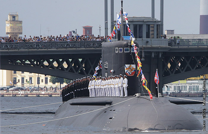 Дизель-электрическая подводная лодка "Краснодар" на параде кораблей в Петербурге