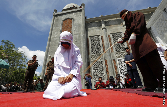 В индонезийском городе Банда-Ачех молодую девушку наказали за близкие отношения вне брака. Ослушавшуюся правил шариата вывели на одну из площадей, где публично нанесли несколько ударов тростью.