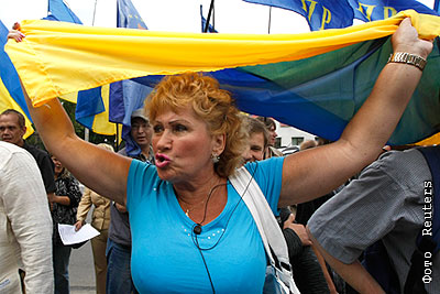 В Киеве перед российским посольством прошел митинг в знак поддержки акций по защите 31 статьи Конституции РФ