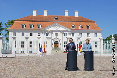 Президент России Дмитрий Медведев и канцлер ФРГ Ангела Меркель на пресс-конференции по итогам переговоров в резиденции германского правительства "Мезеберг"