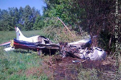 Легкомоторный самолет Як-40, принадлежавший ДОСААФ, взорвался при падении в Ялуторовском районе Тюменской области. Погибли два человека - пилот и пассажир