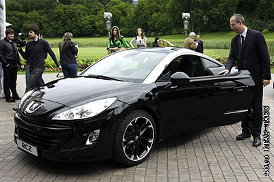 Генеральный директор Peugeot в России Франсуа Пуарье (справа) у автомобиля Peugeot RCZ во время презентации