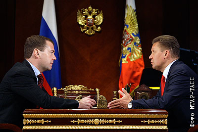 Президент России Дмитрий Медведев и председатель правления ОАО "Газпром" Алексей Миллер во время встречи в резиденции "Горки"