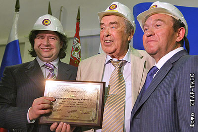 Заместитель министра энергетики России Андрей Шишкин и заместитель министра энергетики и электрификации СССР Александр Семенов (слева направо) на открытии после восстановления подстанции "Семеновская"