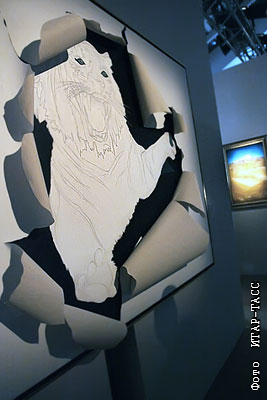 Работа "Бумажный тигр", представленная на открытии выставки античного и современного искусства Ливии "Пустыня не безмолвна"