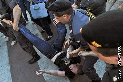 Задержание участников акции "День гнева", направленной против московской мэрии, у памятника Юрию Долгорукому в центре столицы