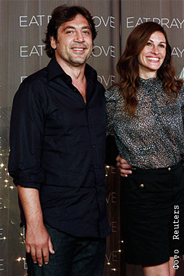 Актеры Хавьер Бардем и Джулия Робертс на премьере фильма "Ешь, молись, люби" в Канкуне